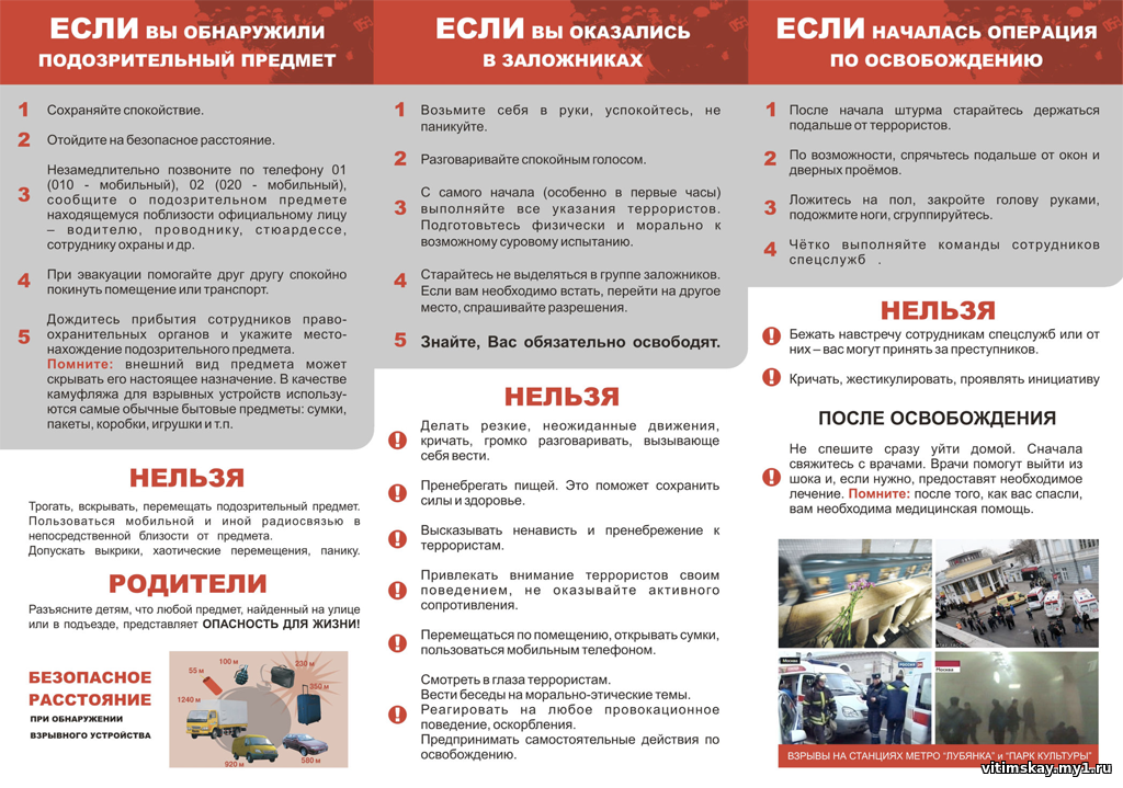 Памятка о действиях при угрозе теракта