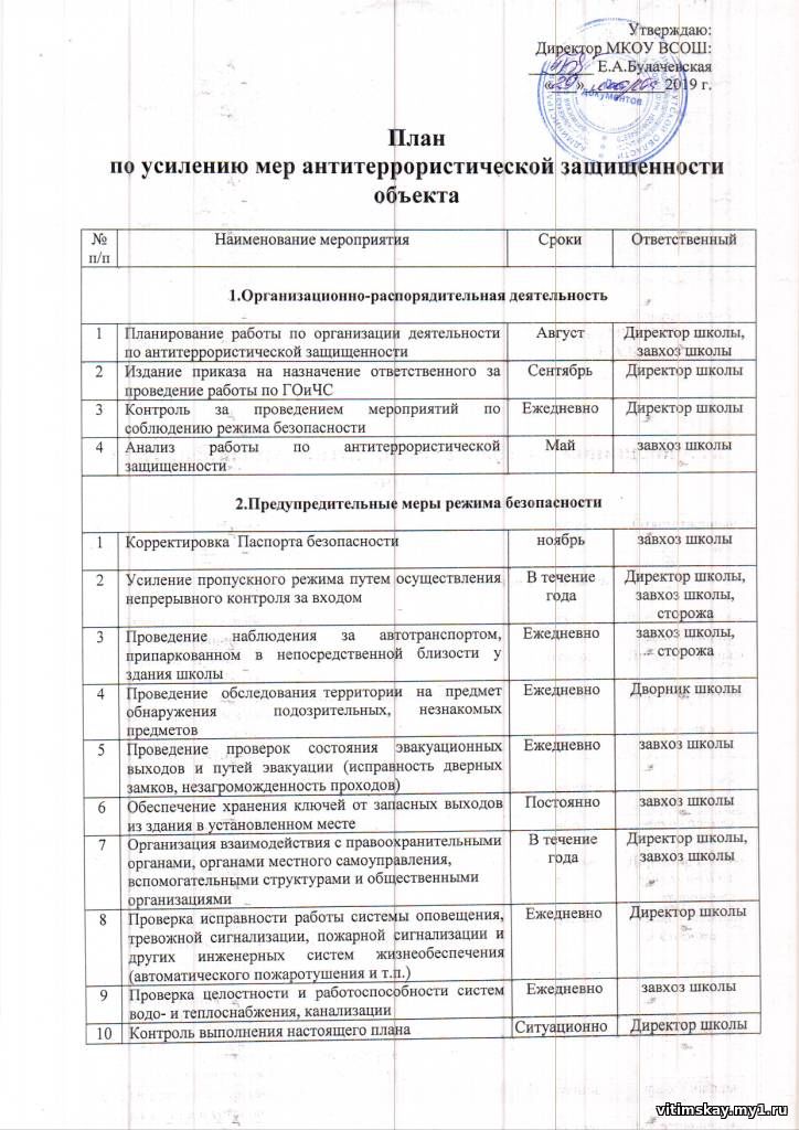 План по усилению мер антитеррористической защищенности